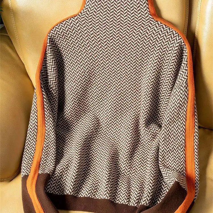 This high-neck sweater offers a sleek, refined silhouette thanks to its subtly charming contrasting stripes. Soft, chic, and comfortable to wear, it moves effortlessly with your daily rhythm and personal style.