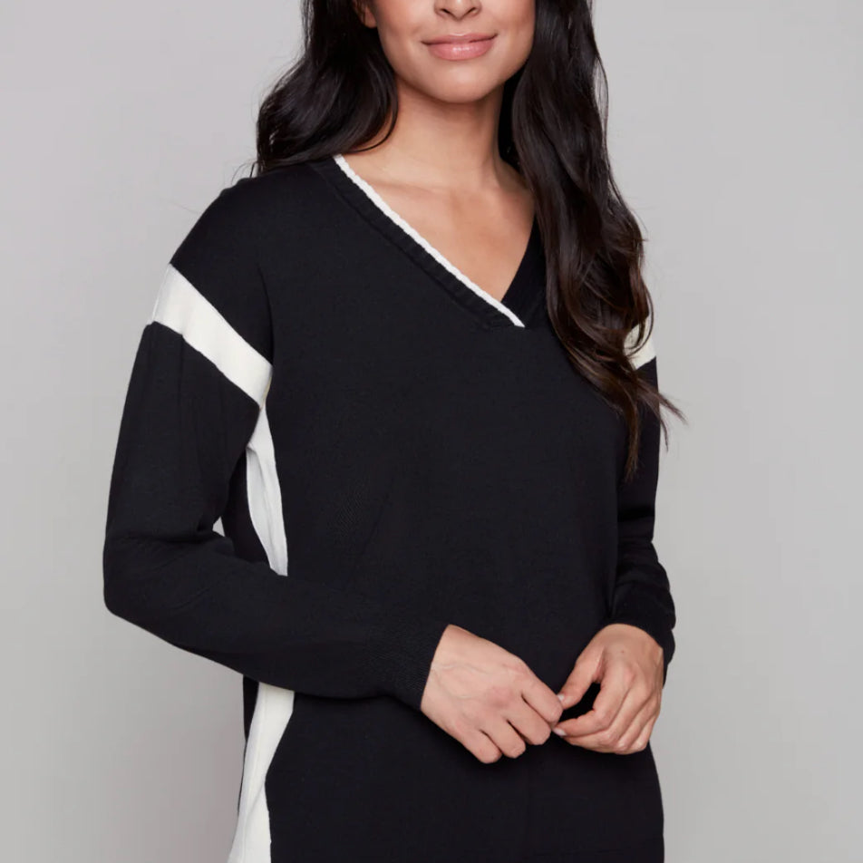 Black V Neck & White