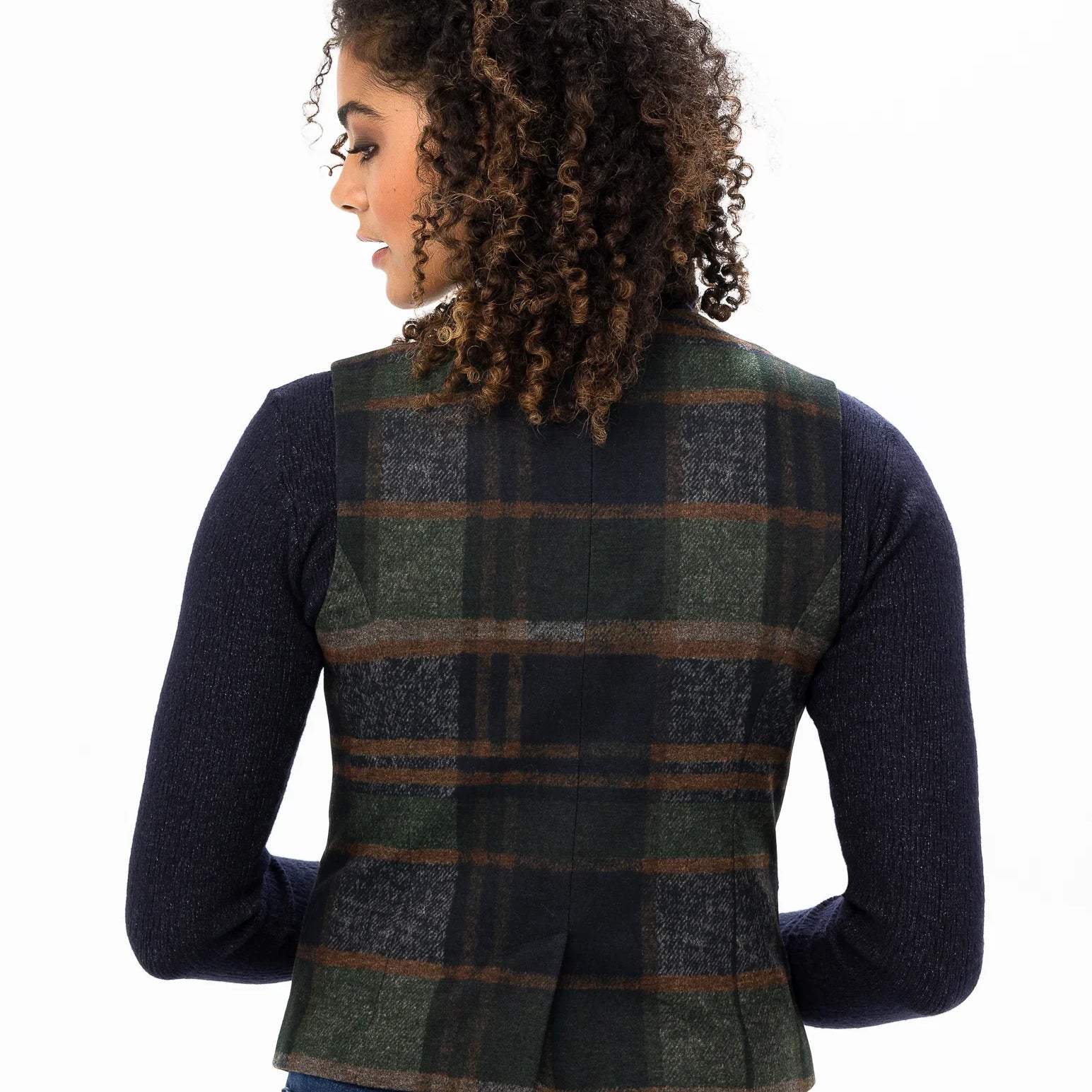 This stylish vest comes in a brushed plaid knit that'll keep you comfy and looking sharp. Whether you're headed to the office or the lounge, this tailored vest is the perfect piece to dress up or down.